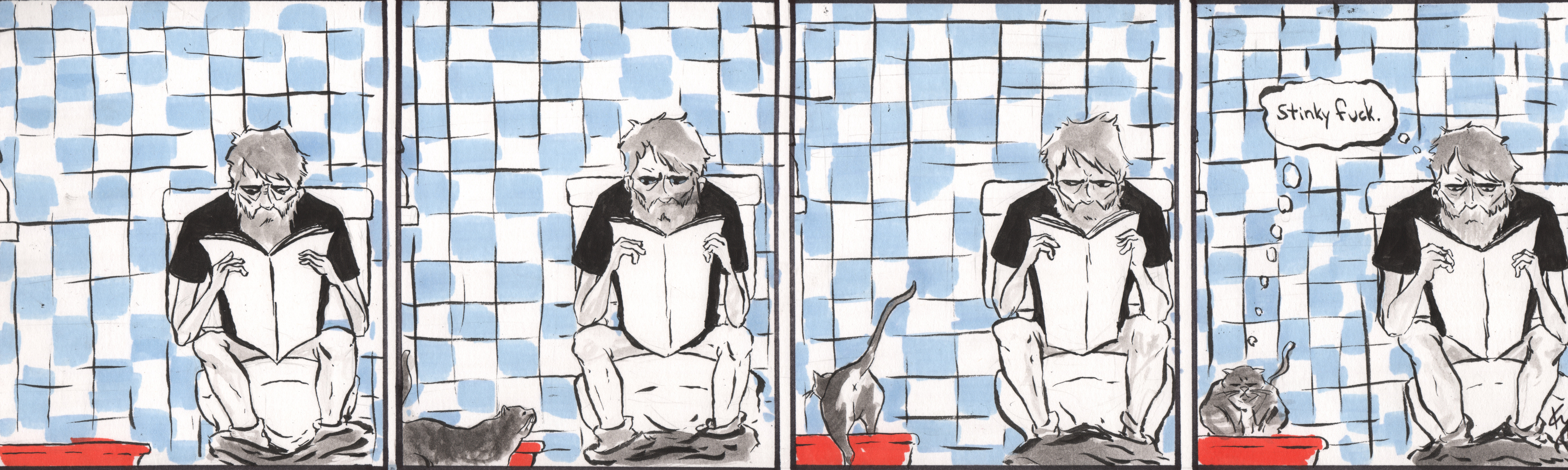 So, this is where I am. These pads contain 24 sheets. Thats 96 (in case you were wondering). So, I am going to do 96 comic strips using TreeBeerd. It’s me without having to worry about repercussions, I guess. I don’t know, I am a grumpy guy, ask anyone who knows me. I actually hope this will be somewhat therapeutic for me, but probably not.