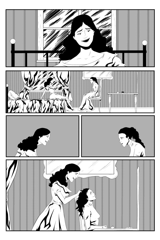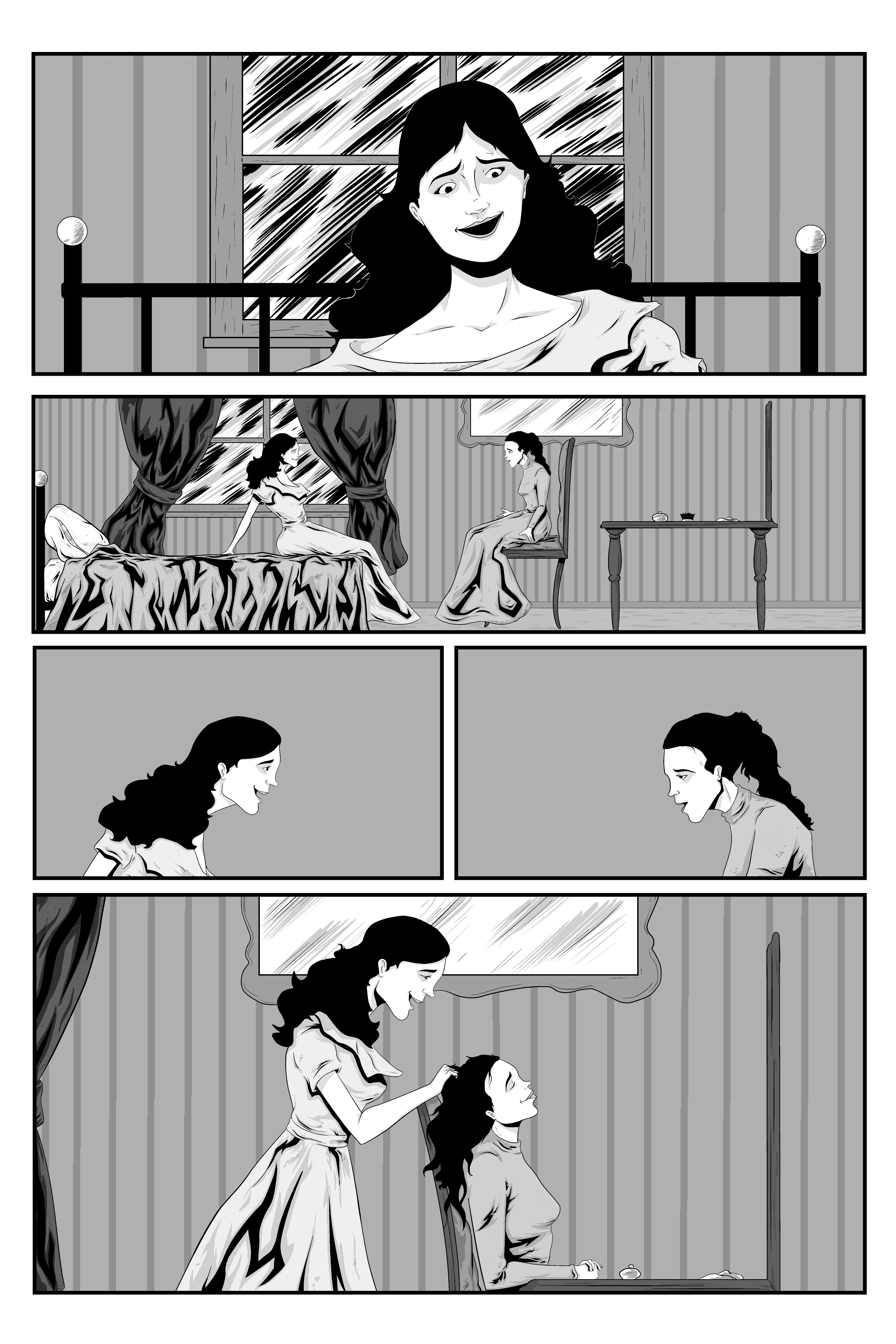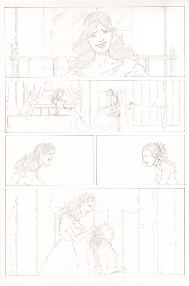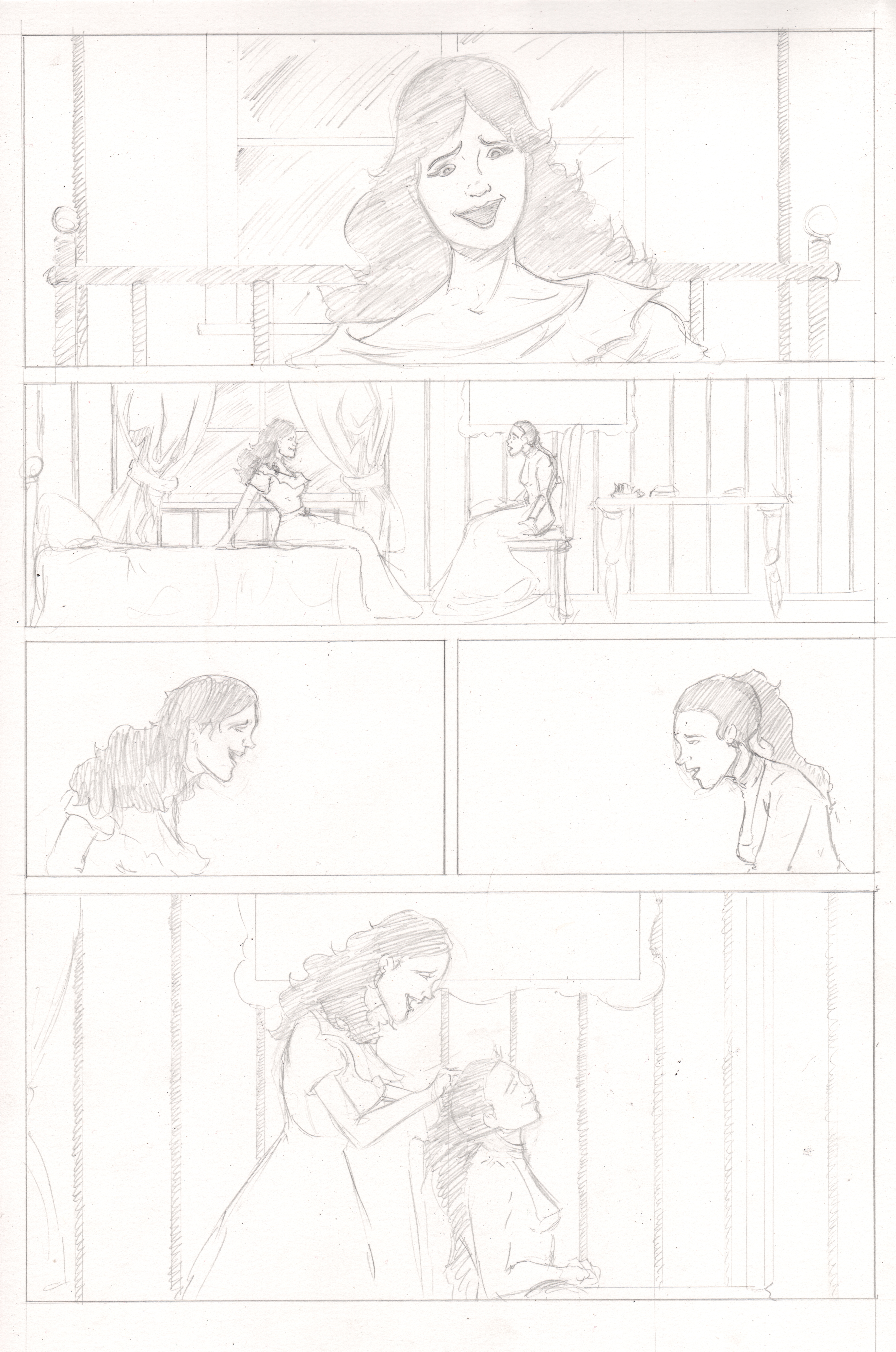 Here are the initial inks. I was a bit of a dummy and started putting the grays on the wall before I remembered to save the file. So, yes the initial inks on this page have a lovely taste of gray on the walls.