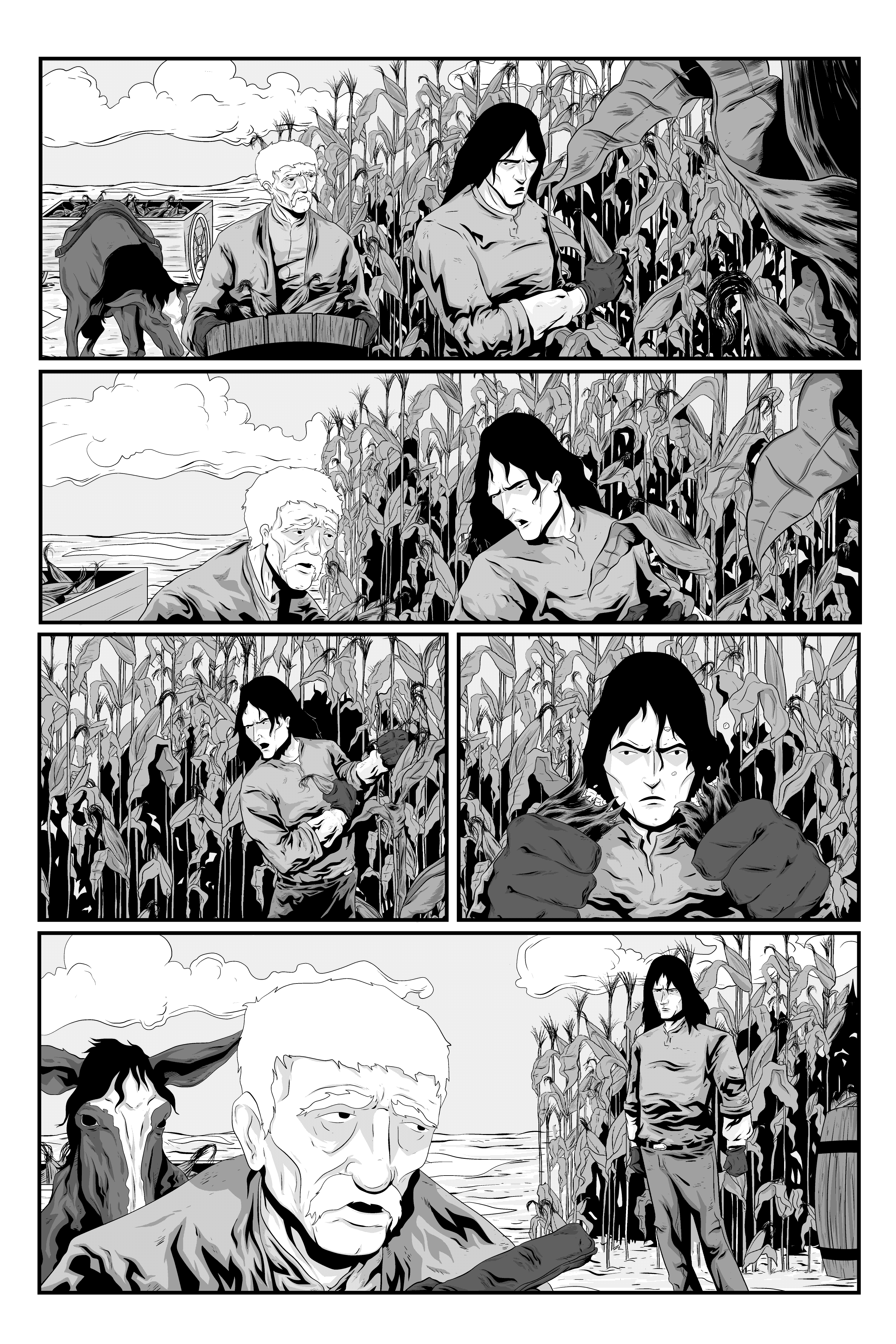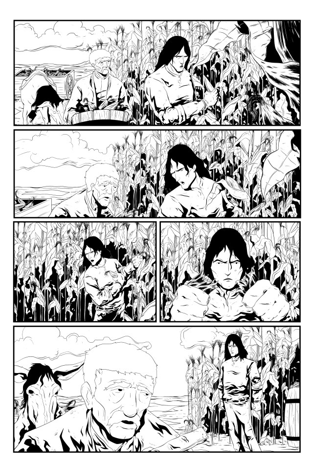 Page 14: I hate to admit it but, I have a hatred for this page. It is all my own doing, I tried to take a shortcut or two that just complicated matters and consistently second guessed myself. I started over on the corn field at least twice. It’s a prime example of being your own worst critic and just flat out self hatred.