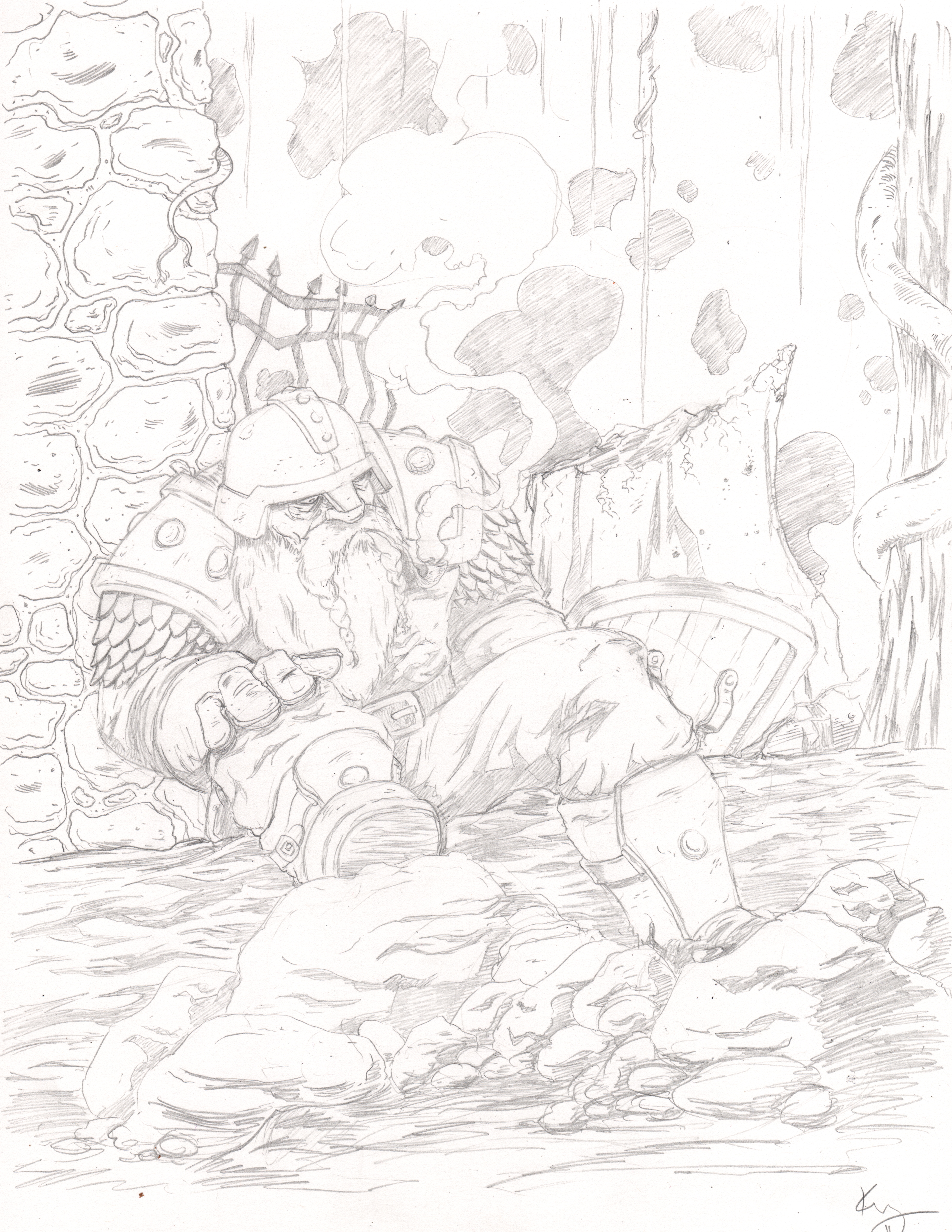 So I am into fantasy stuff. Wanted to do a larger drawing just for the heck of it, thus, a dwarf. I also bought a new brush for the first time in something like 6 years. I did maybe about half of this drawing with it and was very unhappy with the lines so, I switched back to my old raggedy and trusty brush.