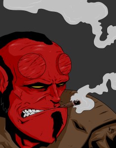 So I have been in the hospital with my wife for 3 days now. Today she finally went in and had her ERCP and I am pleased to report that they removed the offending stone that was clogging her bile duct. She is already looking better and feeling a bit better. I have been worried and stressed so, obviously, when they took her for the procedure I was extra manic. The only thing I could do was try and draw or something. So I give you this Hellboy sketch:
