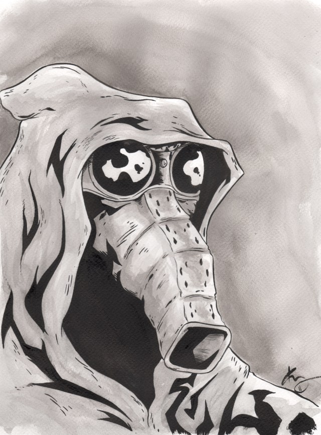I’m sure you recognize this fella as the shady character that was tailing Luke and Obi Wan around Mos Eisley in Star Wars a New Hope. The Star Wars encyclopedia says that the Kubaz race are artists and, you know, other “refined” type things. I like to think that this dude was the black sheep of the family. Parents probably wanted him to be a doctor or something. Instead he got mixed up with the wrong crowd and ended up on Tatooine. Now he just gets by, taking odd jobs and being a filthy spy. I imagine the Empire pays informants well, so he probably went and got wasted as soon as the stormtroopers payed him. After drinking all of his money away, with an enormous hangover, perhaps he set forth with a new plan of Kubaz male prostitution and went on to be very successful in the business.