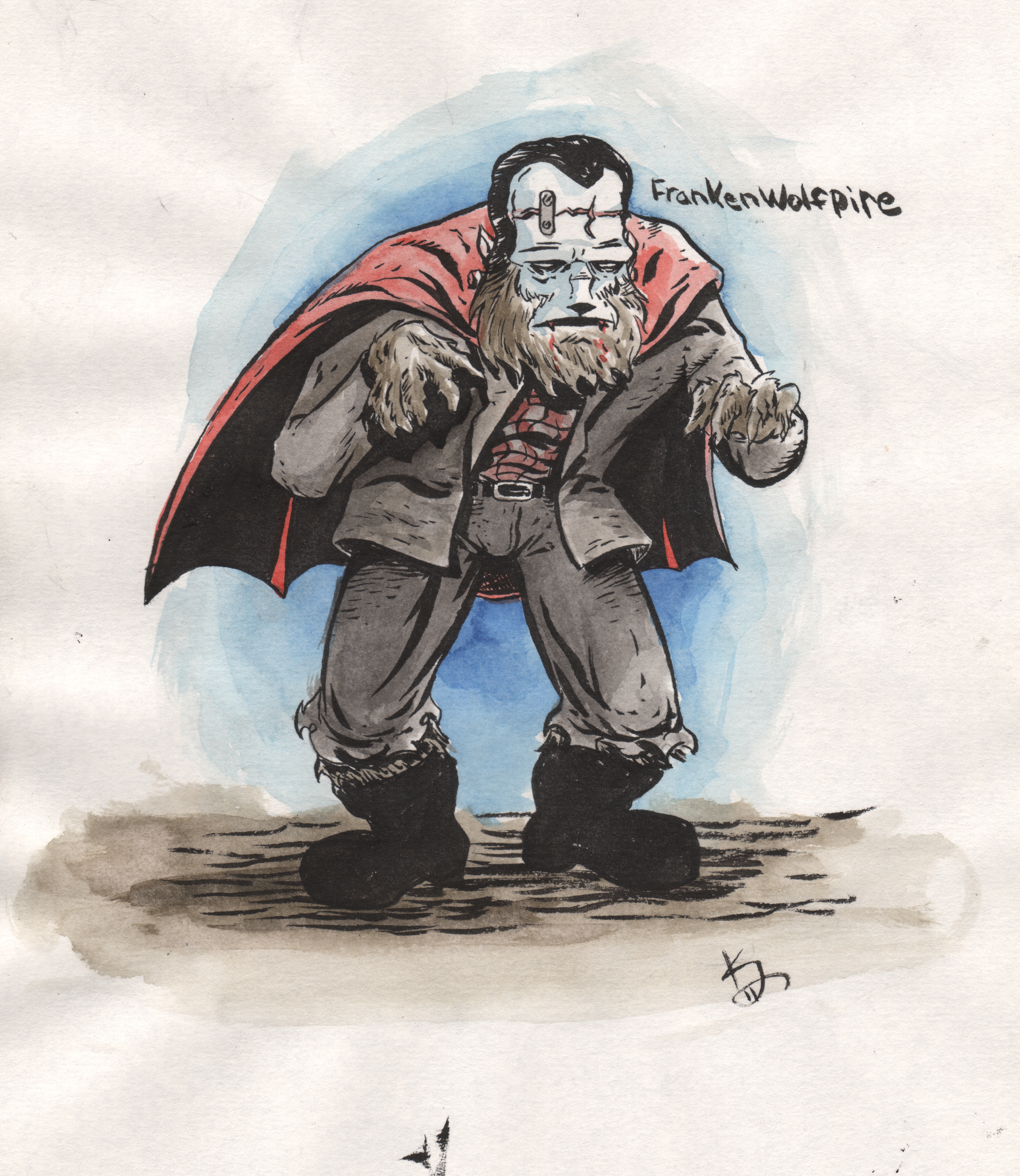 Anyways… While watching John Carpenter’s the Thing with our daughter (her first time… she seen the newer version. I feel like I have yet again dropped the proverbial ball) I was doodling and created the super-classic-monster-goof I present to you and yours now. I give you….