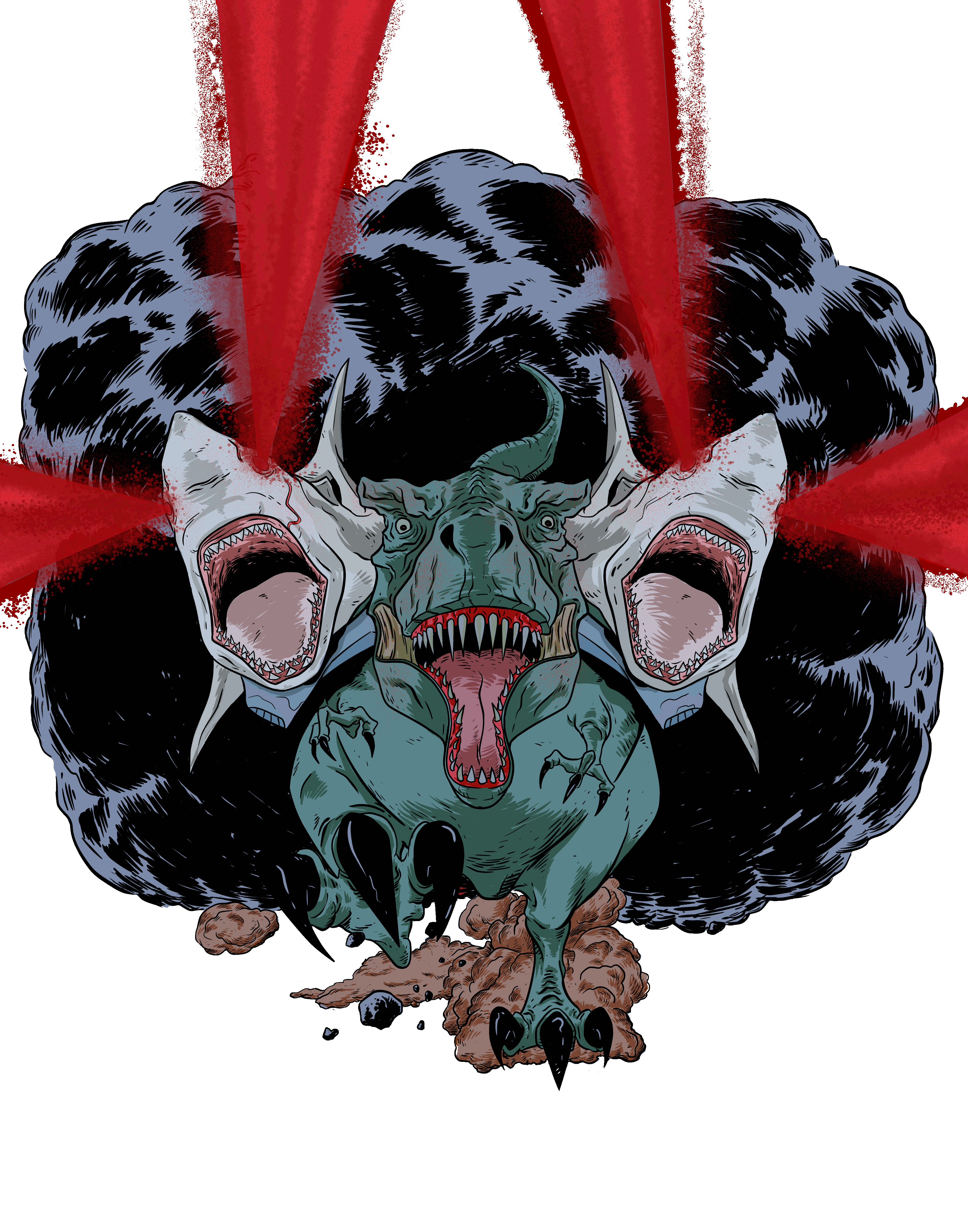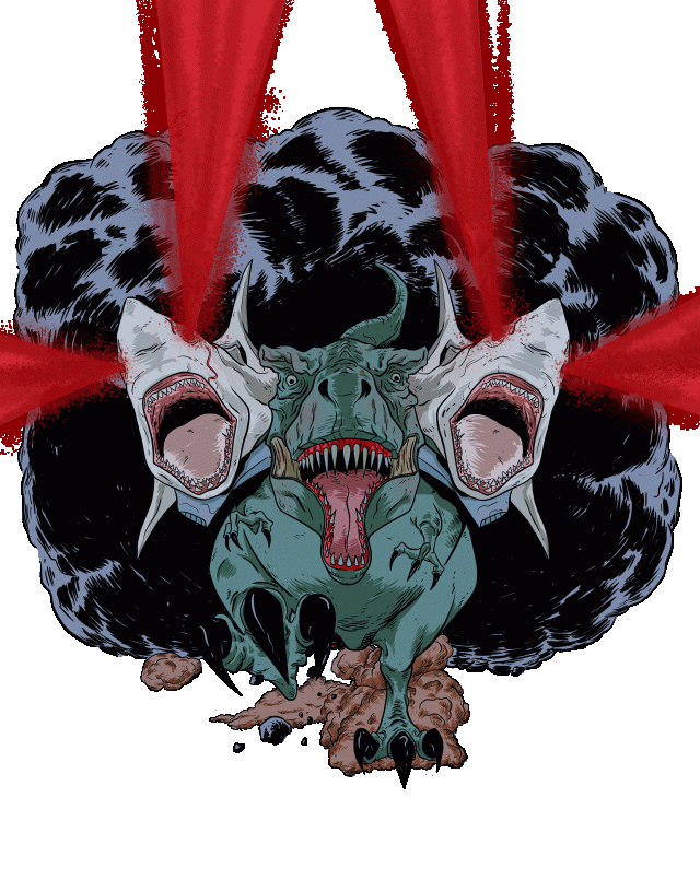 So, because I had a few requests, I just kinda reworked the t-rex with shoulder mounted great white sharks design and put it on t-shirts (and other junk) via cafepress. It seems to look ok so, if your interested, you can check it out HERE