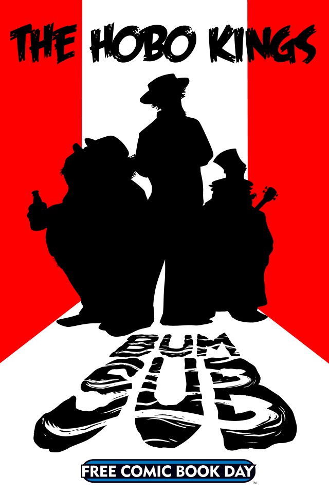 It’s almost done! I just put a cover together for the Hobo Kings Free Comic Book Day preview! I have to wrap up one more page and add the lettering tomorrow. We went with a simple, but effective, cover design for the preview.