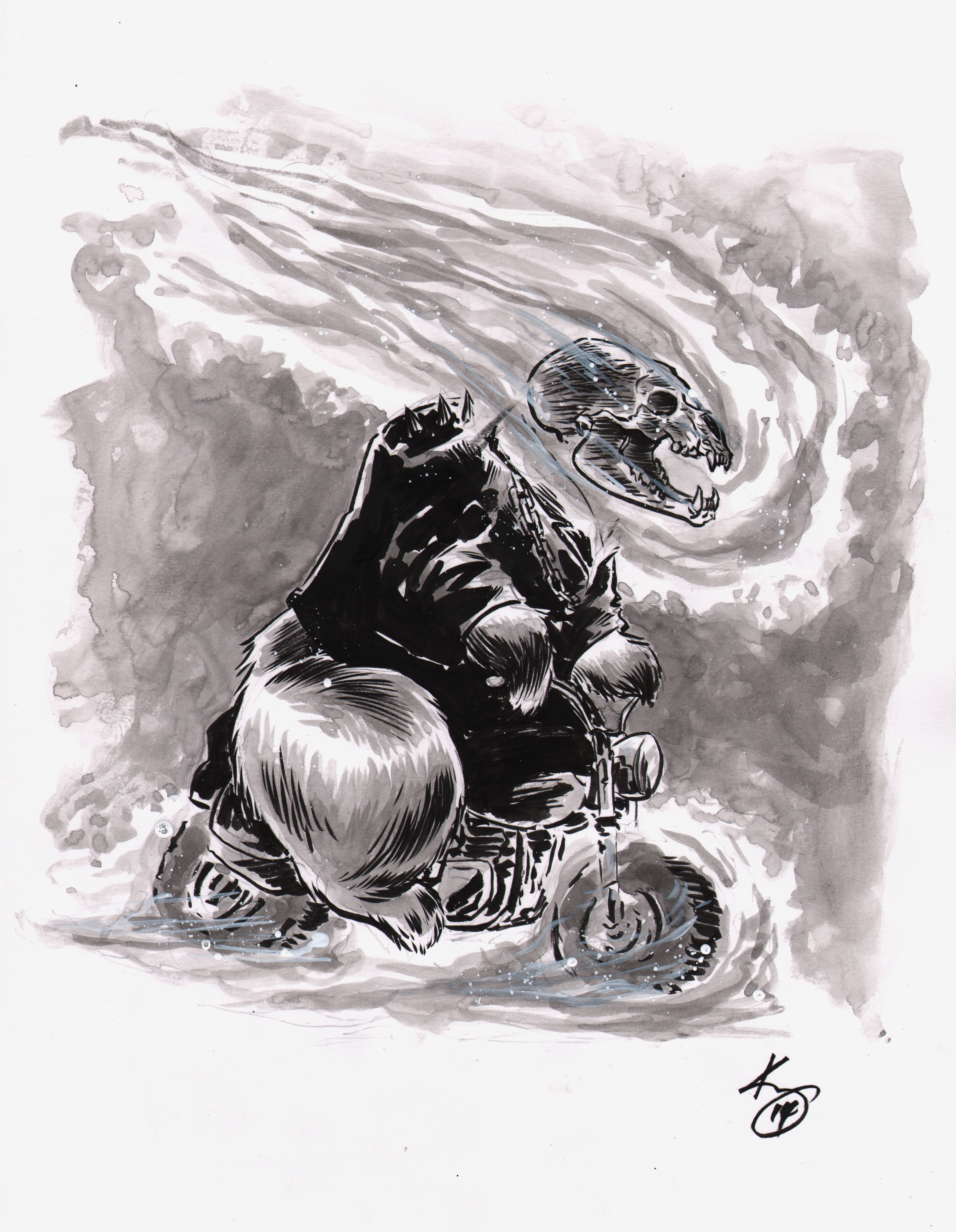 This morning I woke up and started thinking about a Ghost Rider bear. I couldn’t shake it, so that’s the first thing I did before getting to work on projects.