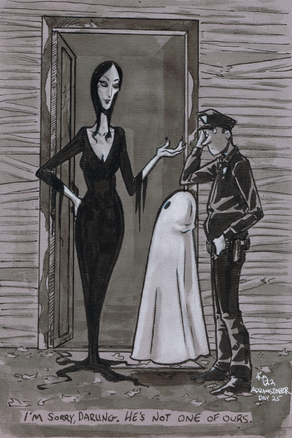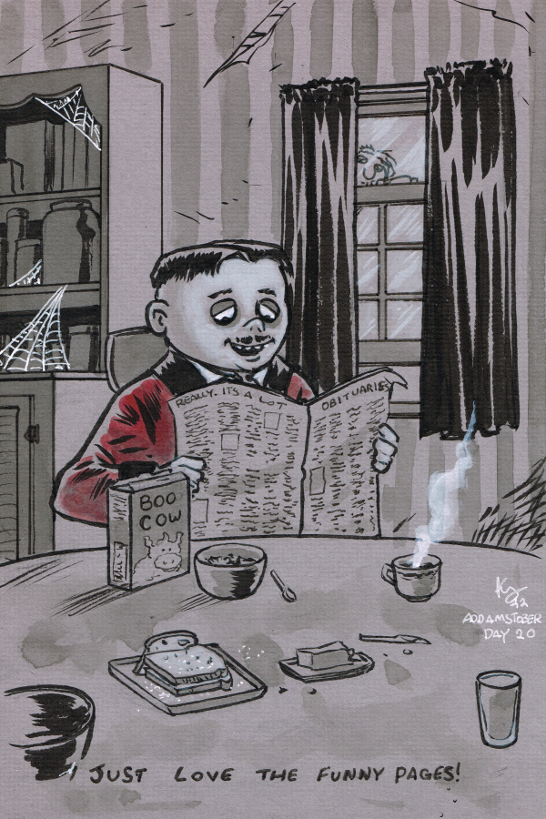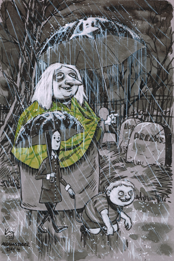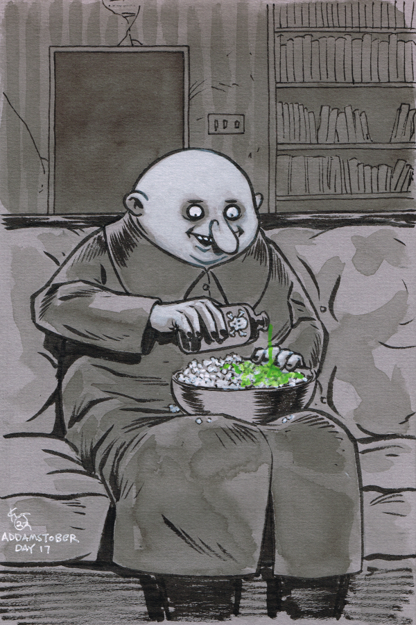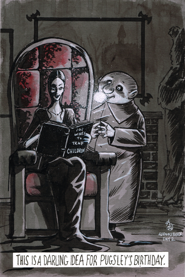 I’m doing a round two of Addams Family drawings this year. The ones from a few years ago were pretty popular. Still are. I hear more from people about the Addamses drawings than I do about any of the comics I’ve put out. Plus I honestly just have a blast drawing them. I’ve missed it!
