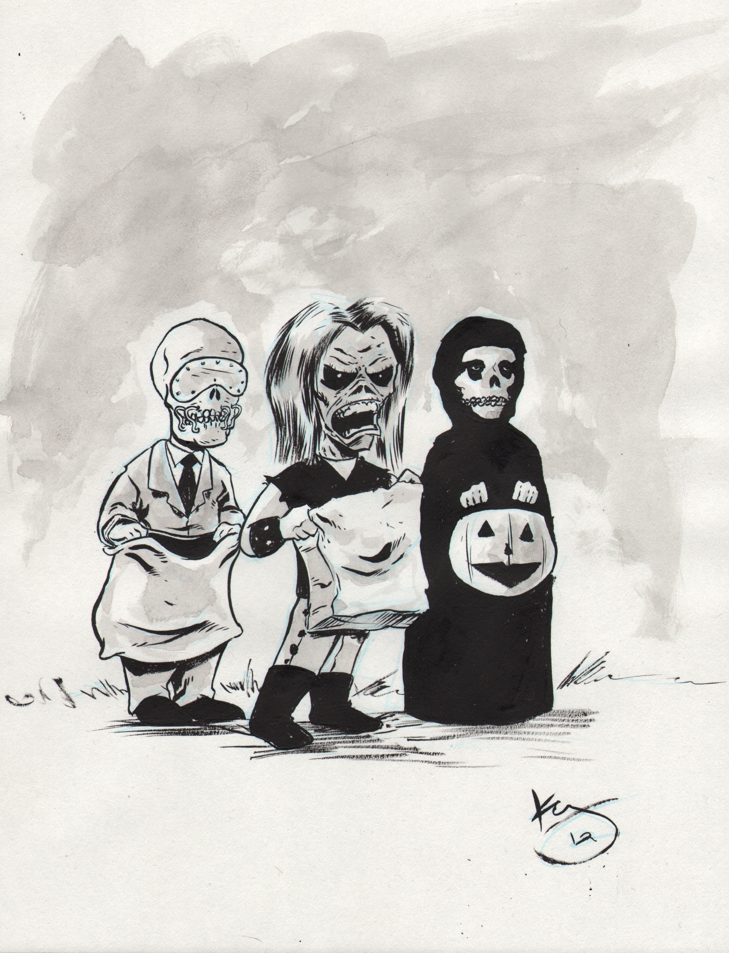 Derek Riggs’ artistic signature symbol can be found on Eddie’s chest.