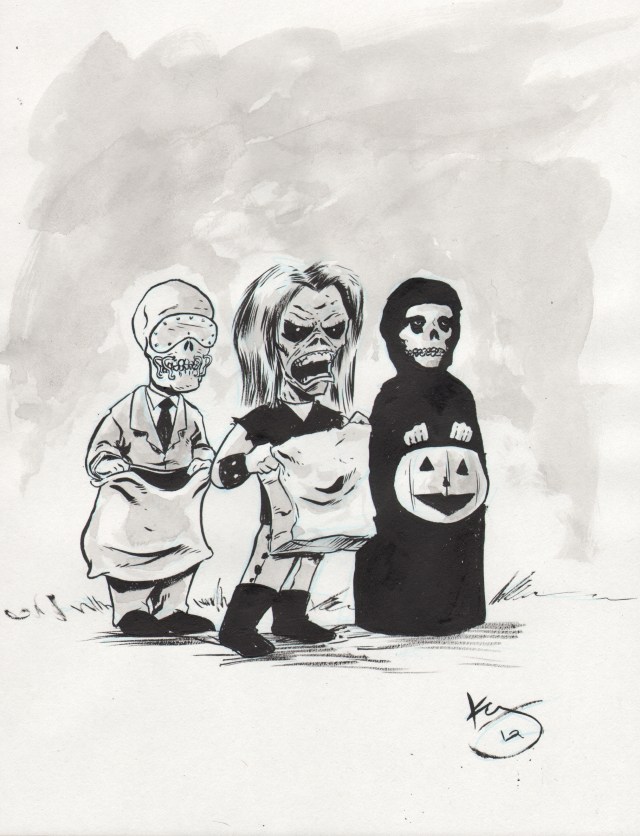 I’m gonna be honest here, I’ve always thought the art work related to this record was some of my favorite. Also, it’s kinda bat shit crazy. In the future, skinless cyborg Eddie roams the streets of some Blade Runner type city. Packing future type ray guns and wearing fedoras and smoking and just being all super futurey. I remember that there were tons of references to old Maiden albums in the cover art, but today I found this list. This crazy fucking list: